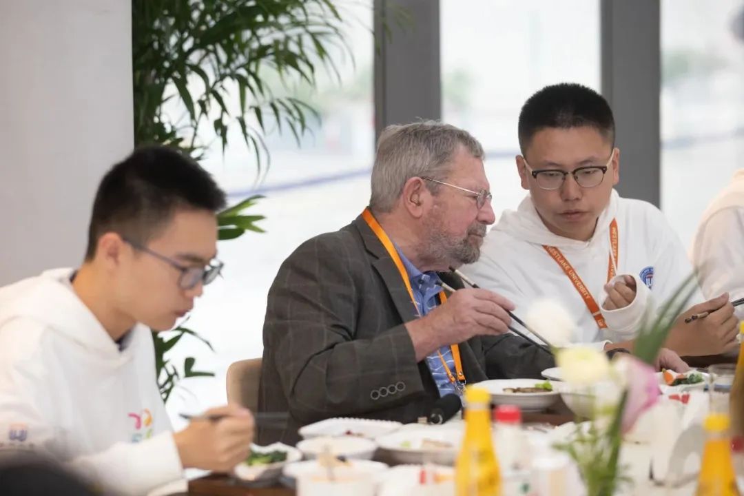 第一道菜是沙拉,几乎每一位外国教授都毫不犹豫地拿起了筷子,反而是中国学生选择了餐叉。这个场面把教授们逗乐了,就此打开了餐桌上的万能话题:美食。