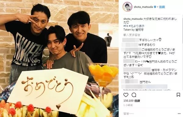 他们在禁烟包厢聊天畅饮,偶尔两人单独走到店外细声聊天。目击的女客人透露,包厢里有人对松田翔太喊“结婚果然会改变哦”,过程中还一直听见互喊“旬”、“翔太”,让现场的客人跟着超兴奋。