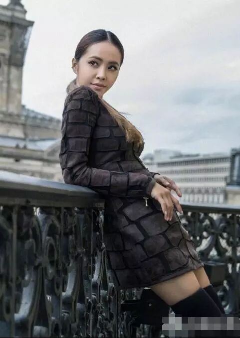 咖啡色的修身的连衣短裙精致优雅,与整体的环境色很适应像画卷一样精致,不同的长方形有规则的拼接很考究,搭配长筒靴性感撩人,欧美风十足。