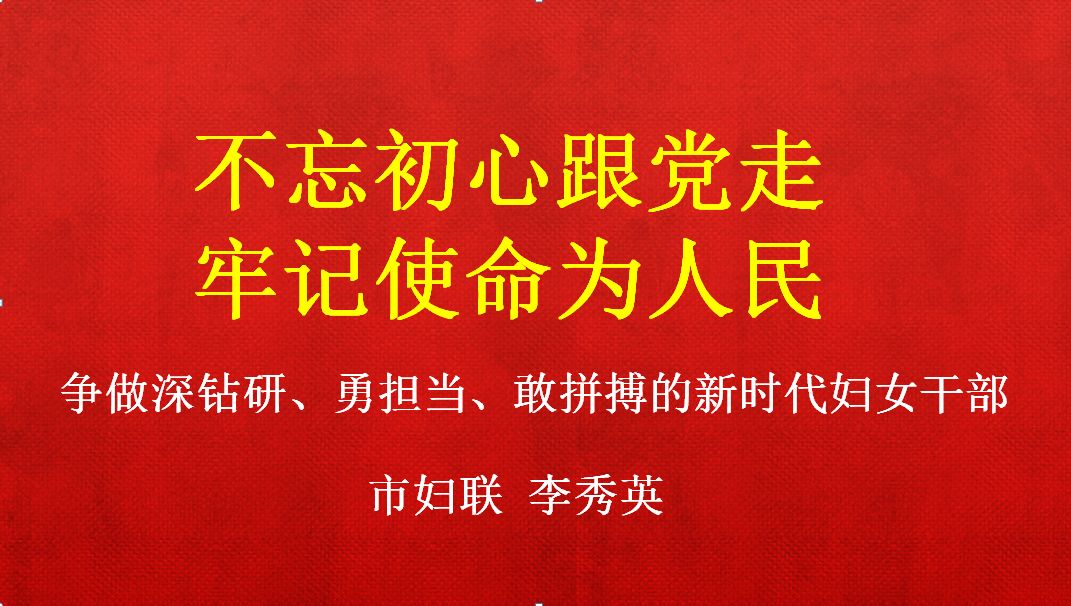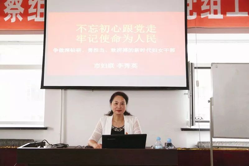 李秀英副主席以《不忘初心跟党走,牢记使命为人民—争做深钻研、勇担当、敢拼搏的新时代妇女干部》为题,从回顾初心、牢记初心、践行初心三大方面,全面回顾了不同时期初心的深刻内涵,生动阐释了牢记初心的深远意义,详细阐述了新时代妇女干部践行初心的基本要求。