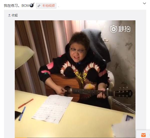 10月2日的时候,她发过一条微博秒拍视频,坐在车上手舞足蹈地唱着BIBANG的《Fantastic baby》。