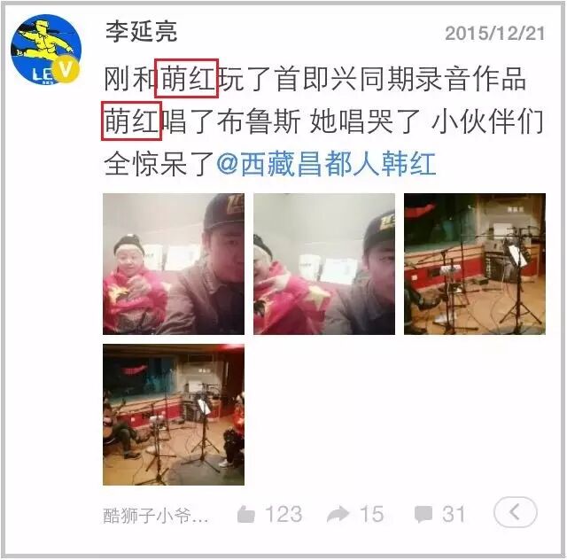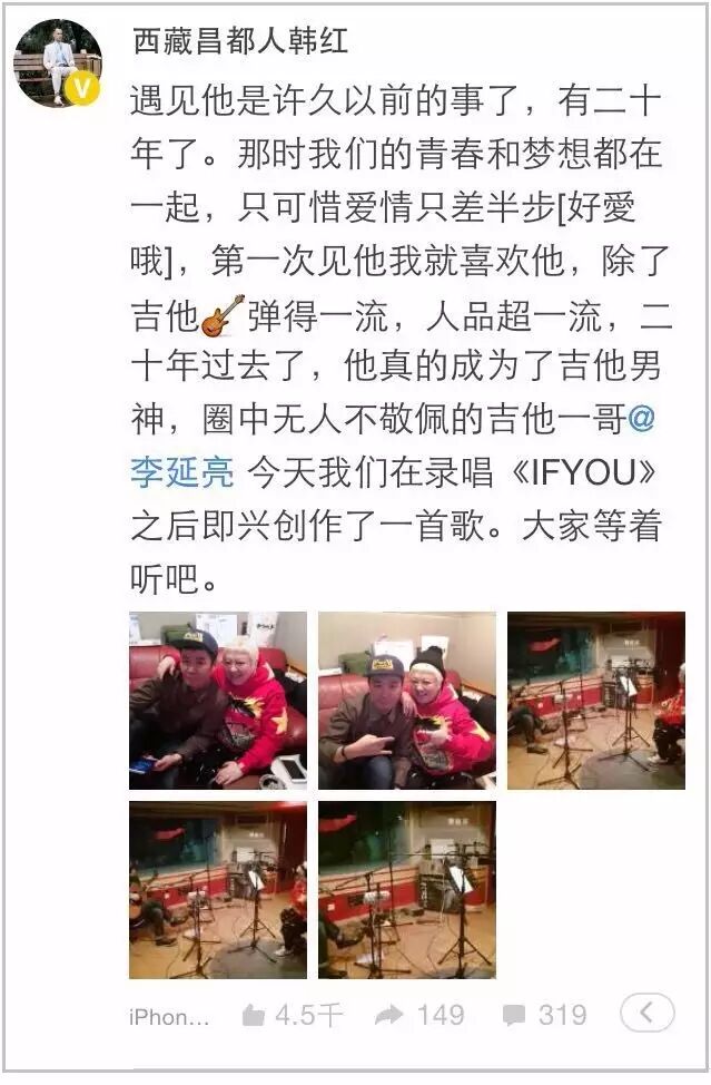 如今,他们还是好朋友,韩红是李延亮口中的「萌红」李延亮是韩红口中的「小亮」