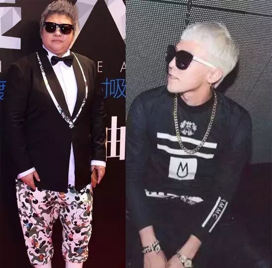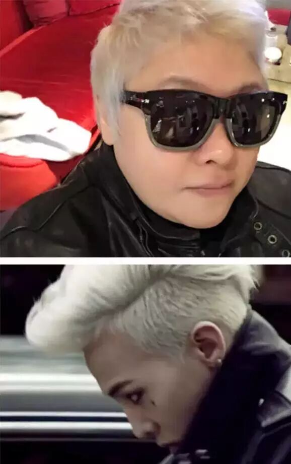 韩红很多时尚灵感可能都是来源于GD,爱豆标志性的奶奶灰染过↓