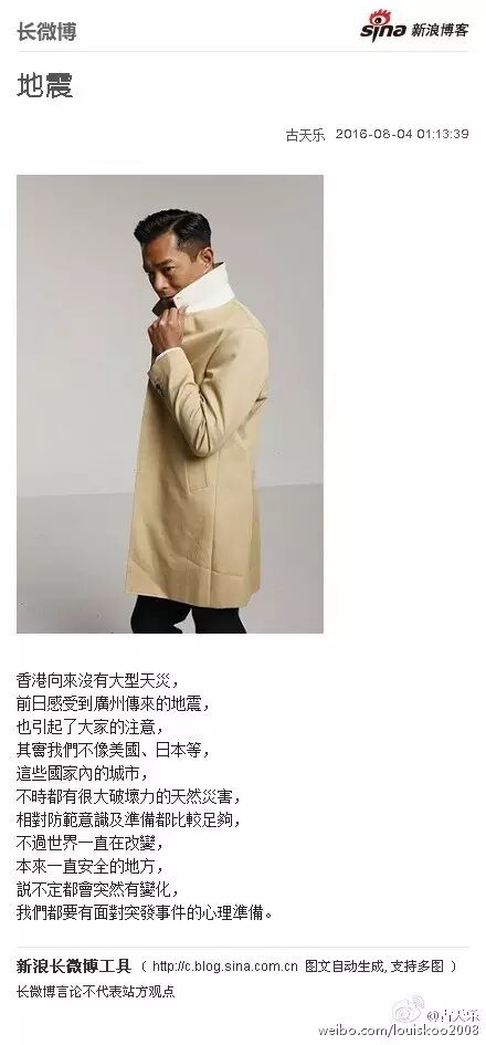 古天乐现在画风是这样的,拍戏也不忘关心身边事物,喜欢发自己“个性的长微博”。