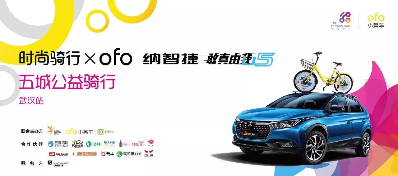看到北京的小伙伴朋友圈刷时尚骑行,羡慕嫉妒恨?韩东君的粉丝能跟爱豆一起骑小黄车,我也想?机会来了!2017时尚骑行Xofo纳智捷敢真由我五城公益骑行武汉站活动开放报名啦!重要的事情说三遍,免费的!免费的!免费的!此次时尚骑行武汉站担纲骑行公益大使与领骑员的是辰亦儒。活动依然由趣动时代、ofo、爱奇艺主办,东风裕隆纳智捷U5独家冠名,芝麻信用、熊猫直播、咕咚运动、恒大冰泉、阿拉善SEE基金会、蜻蜓FM、小红唇、今日头条、星美国际影商城、时代·奥特莱斯、猎票、票牛等合作伙伴联合打造。