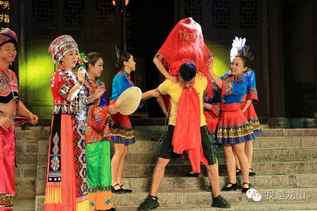 美丽热情的土家阿妹前来邀请,“小鱼”大哥的表演时间到了。请大家注意观察他此时的表情,这种“怕怕”和“邪邪”的表情与体态,真的是太到位了,大爱啊!不得不大大地点个ZAN!