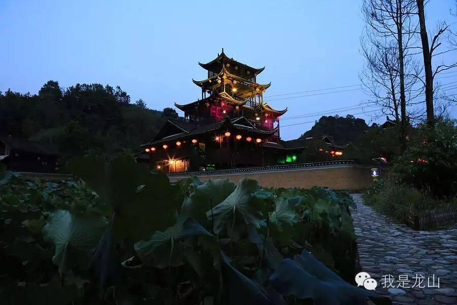 傍晚时分,被盈盈荷叶簇拥的土家冲天楼,灯火辉煌,惹巴拉实景乡村旅游剧《白果花》即将上演。