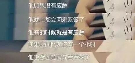 “他如果没有应酬,晚上都会回来吃饭;如果有应酬,比如说中间有一个小时,他都会回趟家看看孩子。”
