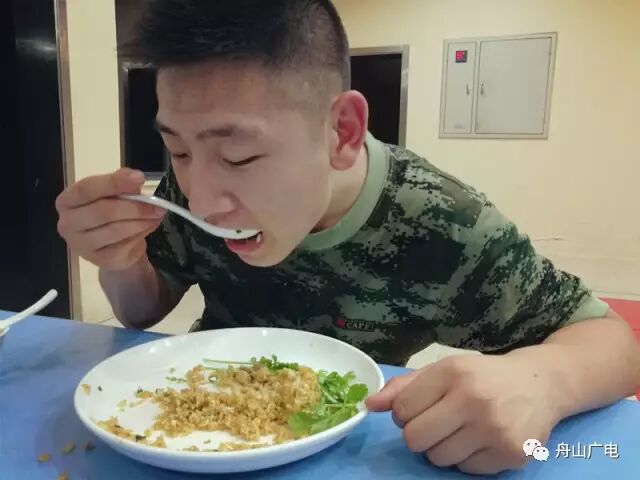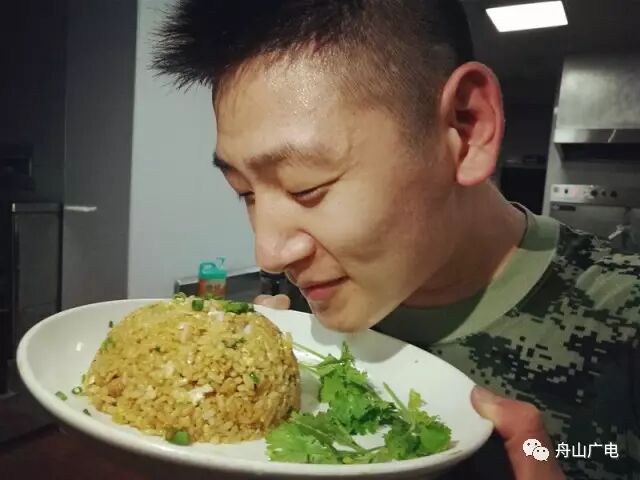 而至于小邹和小徐合作的这碗国民料理蛋炒饭呢?就连摆盘也透出了一点文艺小清新的范儿,谁说军人没有小情怀和文艺细胞呢?