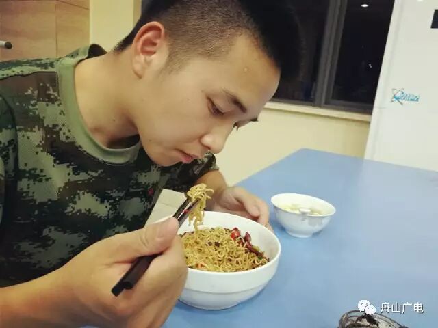 2013年6月一个普通的夏夜,因为一部宣传片的任务,小邹埋头一人在办公室专心做着视频。夜里2点多,查房路过的指导员江道友,瞥见房间透出的光线,打了个招呼就默默退了出去……直到闻到了丝丝香气,心无旁骛的小邹才发觉,重新返回的指导员手里,正端着一碗汤面。最简单的榨菜肉丝面,淡黄色的清汤浮着几点青绿的葱花,却是小邹吃过最温暖的一碗面。
