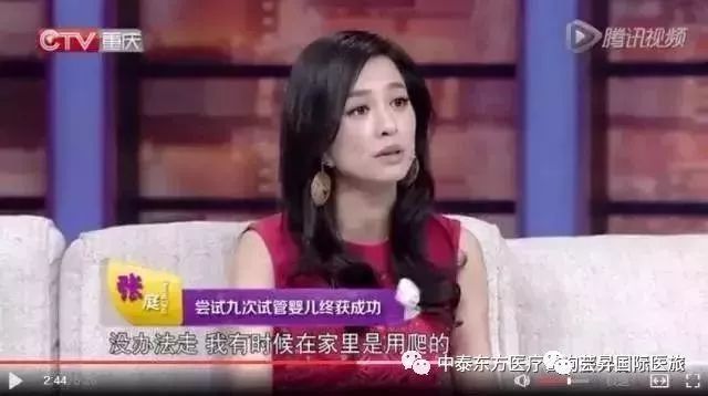 有酒窝美女之称的张庭就曾接受访问说过自己做了10次试管婴儿,第9次才成功。她说:“那个针扎的我全身都是,每天打,三年要打一千多针吧。到了第九次,我好不容易怀孕了。但是又因为胎位不正,要卧床,到了八个月的时候没办法走,就像中风一样,有时候在家里是用爬的”