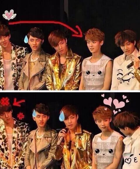 成员们在一起的时候,世勋的目光永远都是穿越过人群看向鹿晗,这眼神也被称作经典的“习惯性向左看”