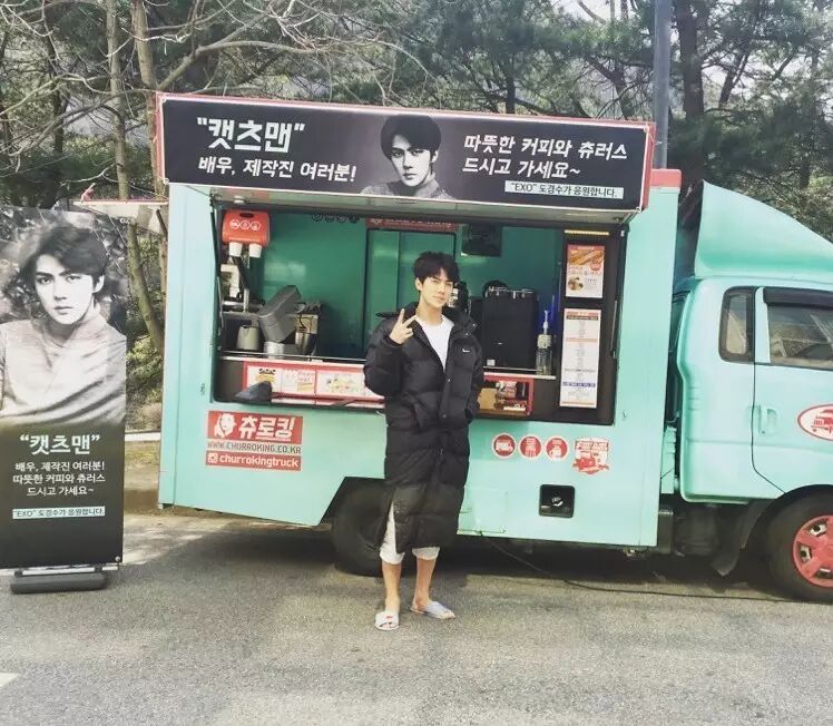 世勋在釜山拍摄电影,“演员届大前辈”D.O.贴心地送去了应援小食车。