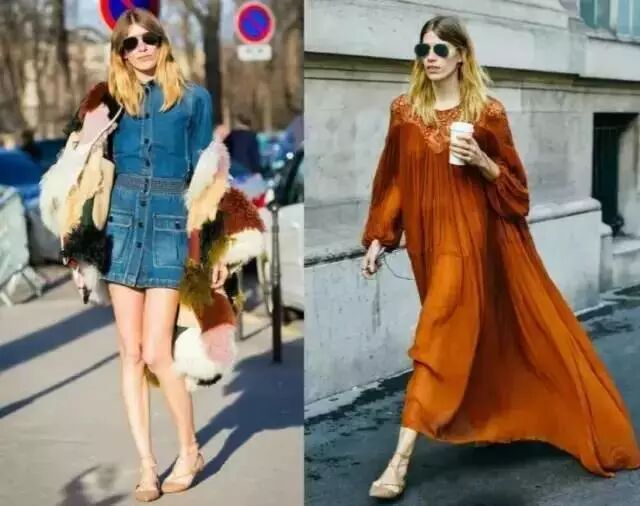 时尚编辑Veronika Heilbrunner一双裸色尖头绑带鞋也是玩出了花样,帅气简单的牛仔装和常人难以驾驭的波西米亚风她都得心应手。