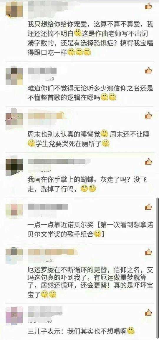 有的歌曲为了押韵和好听,所以歌词并不是十分的有逻辑,很多粉丝听了也都是不太明白,或许三个孩子也是不明白自己唱的是什么意思,但是好听,很多人都很喜欢听就可以了。