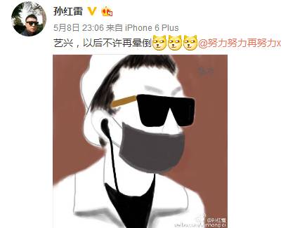红兴CP(孙红雷和张艺兴)中的孙红雷也发微博表示要注意身体。红雷对艺兴确实非常关心~