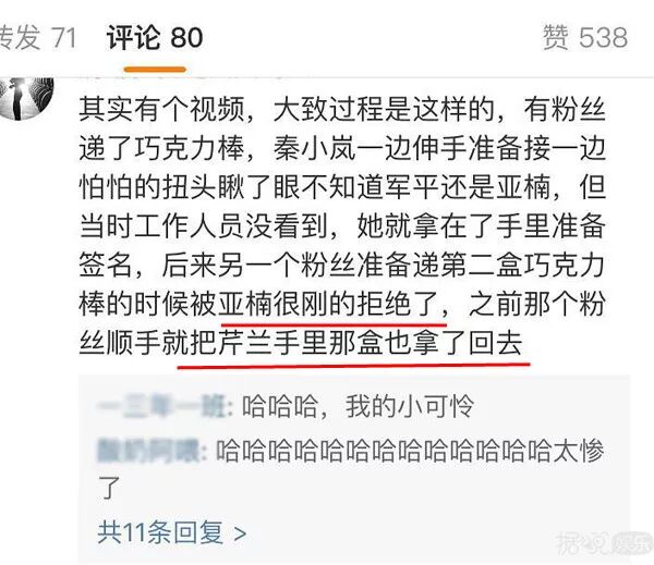 后来另一位粉丝递上了第二盒巧克力棒,结果被秦岚的助理拒绝了。不仅如此,秦岚收到的的第一盒巧克力棒也被还了回去。