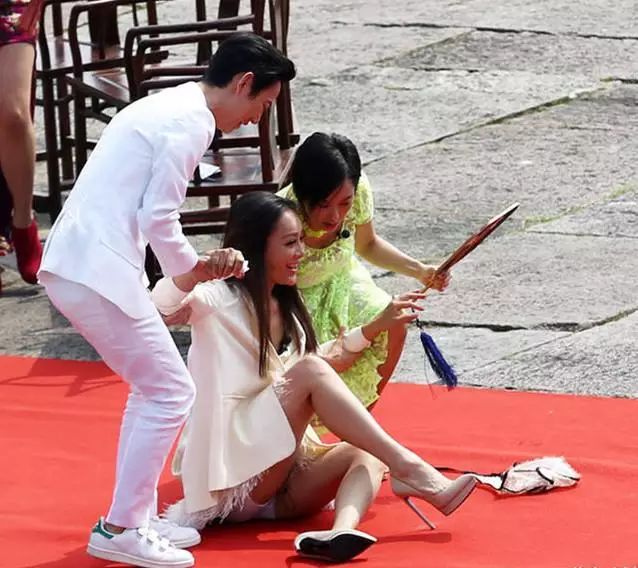 钟丽缇在参加活动的时候也差一点摔了一跤,但是她秀了一下好身材
