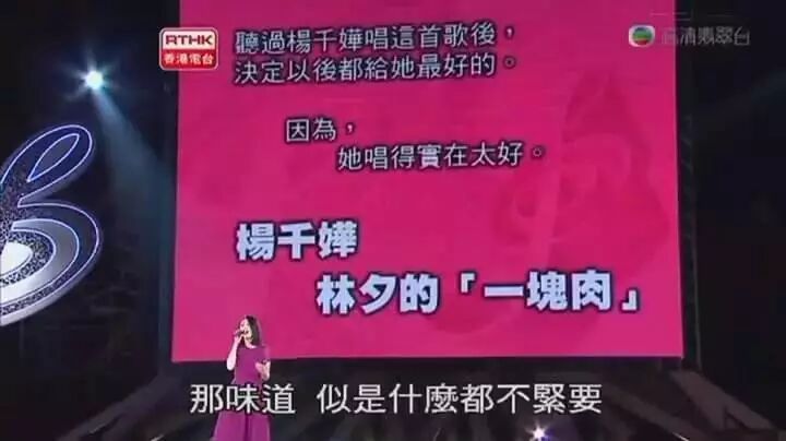 在一年后的万紫千红演唱会上,《姊妹》是千嬅的压轴歌曲。还没开嗓多久,千嬅就攥紧拳头,强忍泪水,压住哽咽,奋力发声。但到了后半段,她颤抖着,连话筒都举不起来,只能傻站着跟着伴奏喃喃地哼唱。千嬅不住地摇头叹息,仿佛用光了力气,脸上的泪水早已横流,眉眼之间都是不可收拾的悲伤。第二遍开始,千嬅还是拿起了话筒,等唱到最尾,“总有天找到一个,真的值得我”,这个性情直爽的港女,还是像17岁少女一样哭成了泪人。