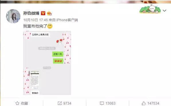作为女主的孙怡也无时不刻的为自己剧做宣传,她本人也因姜生一角色圈了一波粉,近日,孙怡晒出一张与老公董子健的聊天记录,并且配文称“我宣布他完了”,潜台词是你死定了!