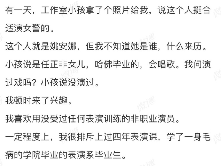 张颂文给华为二公主抬戏辛苦了,给我看笑了 八卦芒果 内地男星 2024-02-27 20:54:21 21 创作不易,用心坚持,欢迎请BaGua喝几杯爱心咖啡!打赏并支持本文 打赏并删除本文 ☀本文作者:八卦芒果(bgmango)☀八卦芒果推送原创的娱乐八卦和影视评(吐)论(槽)。☀叫“芒果”是本人喜欢吃芒果,和某台没关系。☀合作联系QQ:2682509721前些天,上线了一部品相奇特的刑侦网剧《猎冰》,华为二公主姚安娜搭档正当红的实力派演员张颂文,网友感叹“这就是钞能力”。科普一下,任正非有三个孩子,大女儿孟晚舟和儿子任平是第一任妻子孟军所生。小女儿姚安娜是第二任妻子姚凌所生。姚安娜1998年出生,比姐姐孟晚舟小26岁。姚安娜在2020年底突然宣布出道,走的竟然还是时尚爱豆唱跳路线,后来可能实在是太僵硬,转攻演戏,反正她想干嘛就干嘛。然后她还这样说↓ 从这个出道视频?也能看出来,她真的一点星味都没有,话说丧气沉闷,像在面试,对面试岗位也没多想得到的那种。她上面说的“付出很多努力考上的学校”,说的是哈佛。然而众所周知,巨富家庭进入常春藤学校的门路,并不是只有苦哈哈考试一条。前些年就有“赵思雨事件”(富二代砸650万美元搞了个帆船运动员身份上斯坦福,然后说是靠自己努力考上的),向普罗大众披露了其中一条路子。姚安娜的履历真的不起眼,亮点是芭蕾舞。而且她的芭蕾舞水平↓对比哈佛同批次录取的另一个女学生的履历↓ 哈哈,这就是姚安娜说的,跟大部分同龄人一样,付出了很多努力才能考上好学校。有几个同龄人付出她的努力可以上哈佛?河南考生说说看......现在二公主对在哈佛学的专业不感兴趣,要进入演艺圈,拍杂志,上综艺,做女一号,也是一句话的事。咱现在喊她公主,不是擅作主张的,而是她自己的出道标签就是“破格公主”。说回《猎冰》。姚安娜是女一号,饰演缉毒警察赵友男,张颂文是男一号,饰演制毒高手黄宗伟,整个故事就是华为二公主追击小米代言人。虽然说,《猎冰》开拍的时候,《狂飙》还没有播,“高启强”还没有爆红,但是《风中有朵雨做的云》和《隐秘的角落》也挺火的,很多人都知道了张颂文是一个摸爬滚打多年才得到一点机会的实力派。而姚安娜空降一部剧的女一号,真的容易联想到“钞能力”。再对比张颂文的辛酸成长路,更加五味杂陈。导演高群书出来解释,绝对没有“带资进组”这回事,他不喜欢那些在演艺学院学了一身毛病的表演系毕业生,看中的就是姚安娜的“朴实”,以及没有整过容。(导演高群书微博)这就有点子幽默了,那满大街没受过表演训练的,没整过容的,又更上镜的,他就一个看不上?是别人不够朴实?不过我倒是真的相信导演说的,姚安娜没有带资进组。因为这个世界有些人就是可以凭着背景,连钱都不用送,别人还得上赶着卖她人情,还要反过来给她钱。而且她的出身也是自带热搜话题的,相当于自带宣传资源。说她需要带资进组,属实是有点不谙世事了哈。现在姚安娜的演技被吐槽,导演其实自己也知道她演得差,但是导演把责任往时间、资金,甚至自己身上揽。批评可以他,不要批评公主。(导演高群书微博)汪海林吐槽姚安娜的演技,导演激烈地出来维护,真的对她很上心了。(导演高群书微博)我不是前辈,也是年轻人,说两句总可以吧?那就让我们来看看,朴实的二公主姚安娜是怎么给“一身臭毛病的科班演员”好好上一课的。这是......笑场了?拿枪抓贼,仿佛是第一次玩网游,紧张兮兮的样子↓没天赋、没灵气的人演戏都很容易犯这个毛病:脑中有镜头,努力组装动作,越用力越露陷。她面无表情,想表现认真严肃,观众却是能感受她的内心活动:“摄像机在拍着,我要认真地演认真,嗯,我这个表情姿势应该很认真了吧?......”她双目无神又过于有镜头意识,每次寻找证据的时候,像在近视眼找眼镜。她念台词像在背课文,对所有人都是无区别的凶巴巴,所以感受不到一点人物“立体感”,像一个念台词的AI。很明显导演在拍的时候也是知道她不行,所以她很多戏份都是在奔跑,虽然她跑得也不好看,但没人规定跑步必须好看,再配上动感的BGM,一个努力办案的女警画面就勉强出来了。其实也不只是姚安娜,这个剧除了张颂文,处处都透着“草台班子”的感觉。而且已经潦草出了一种幽默感。导演说,这部剧的投资很低很低。确实,片子里各个场景都透着“穷”。群演一看就是找的附近村民,可能50元一天吧。你猜怎么着,这些人都比要姚安娜自然。大毒枭的别墅,一看就是在那种疏于维护的廉价度假村拍的。场景潦草也就算了,关键是剧本也极其潦草,尤其是警察破案线。警察办案全靠猜,而且一猜一个准,毫无悬念,女主潜伏进毒窝易如反掌,在毒窝里用电话通风报信再逃出毒窝没有一点点难度。这难道是鸿蒙系统给的外挂?给大伙都气笑了。很多桥段为了突出女主,到了反智的程度。她一个没什么办案经验的新人,猜出了所有的破案关键信息,比身边的老警察厉害百倍,还经常命令上级做事,上级也没有任何意见,她说啥就是啥,这剧可以改名《神探赵友男》。其他演员都很自觉地扮演一个给二公主抬轿的NPC。看这个剧,不但觉得自己也能当演员,甚至有一种能当缉毒警察的错觉。总之,破案线基本可以忽略,作案线倒是有一些奇奇怪怪的看点。张颂文饰演的黄宗伟,原本是电信的员工,老婆生了三胞胎儿子,他辞职跑