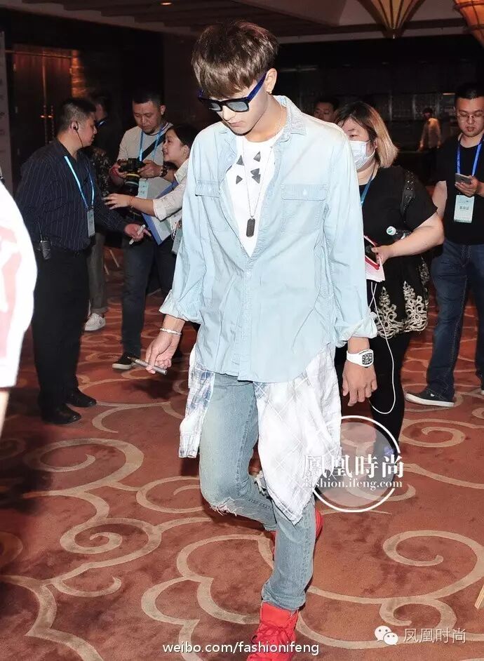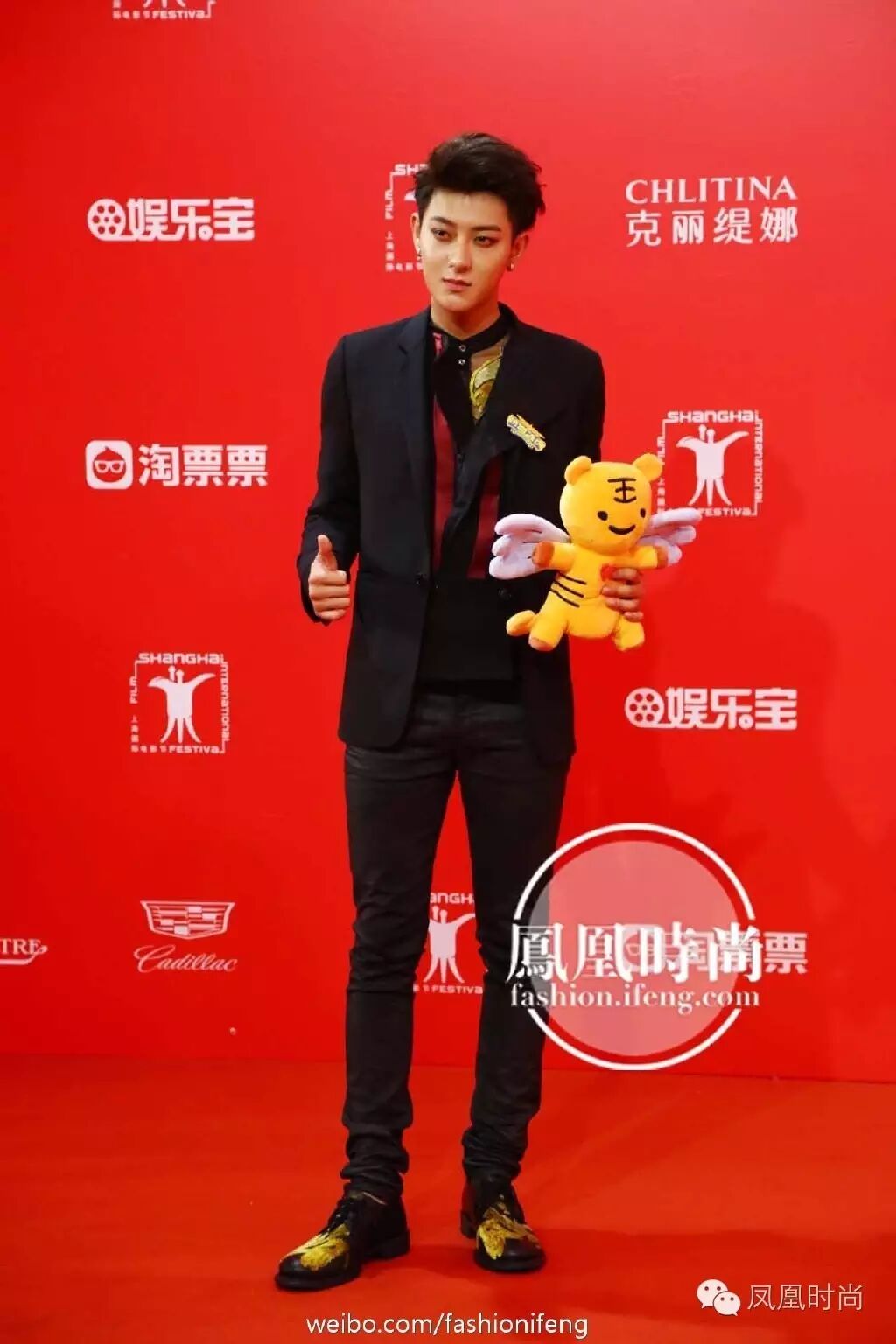 第19届上海国际电影节上,黄子韬身着Ann Demeulemeester 2016秋冬系列亮相上海电影节,镶嵌红色缎带的马甲增添了一丝军旅的飒爽,再搭配合身设计的西服,既有王子的华丽气质,又暗藏一丝哥特式的性感。他手拿玩偶又有些萌萌哒~