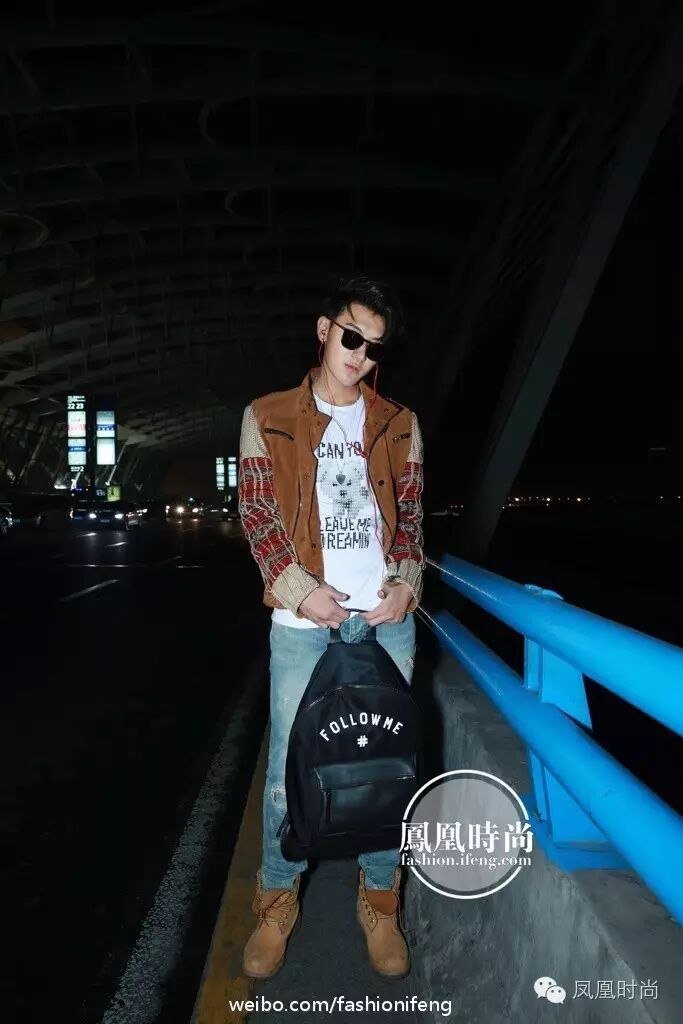 黄子韬启程米兰时装周,身着宝姿Ports 1961刺绣麂皮夹克和由他亲自设计的芭莎公益慈善基金慈善T恤,搭配经典Follow Me双肩包,一身率性装扮带着他一贯的不羁与洒脱。