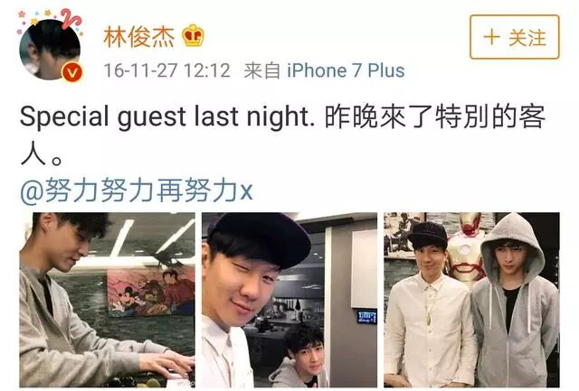 16年,EXO结束了台北演唱会,张艺兴去了林俊杰的家里做客,还弹奏了林俊杰珍爱的钢琴