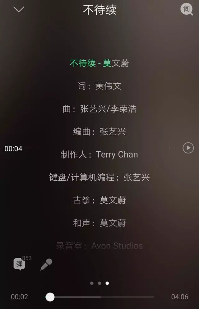 张艺兴为莫文蔚《不待续》谱曲,整首歌非常有节奏感,古筝的加入让整首歌都有了不一般的感觉