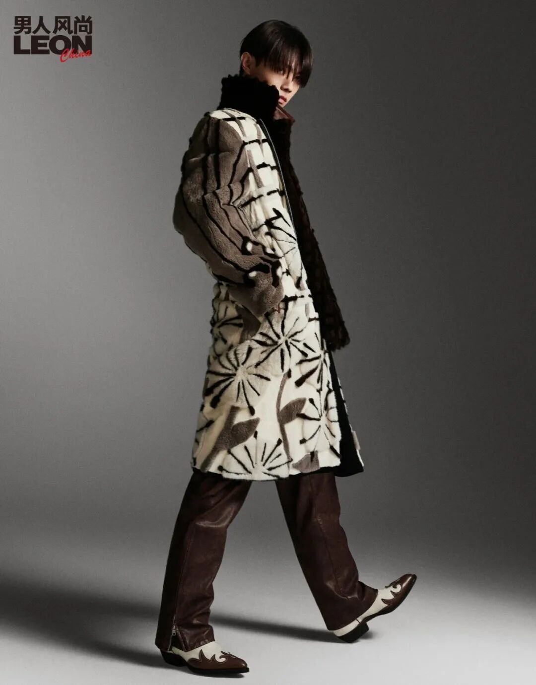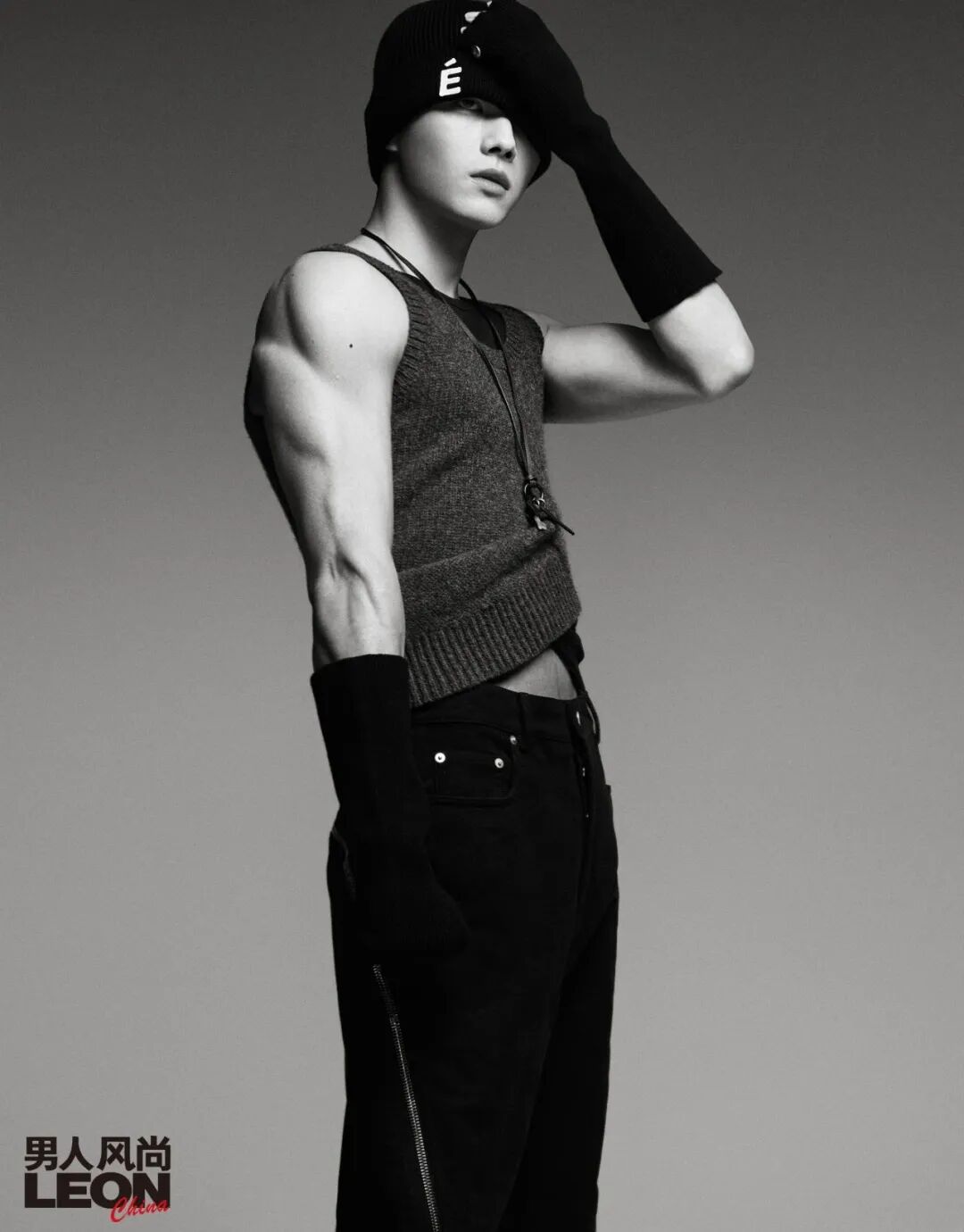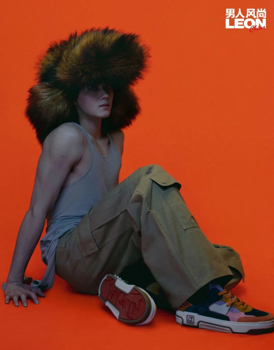 过了一会儿,他戴着毛茸茸的帽子,露出好看的肱二头肌,显得更硬朗。但他会有意想不到的羞涩,被夸好看时不好意思地抿抿嘴。