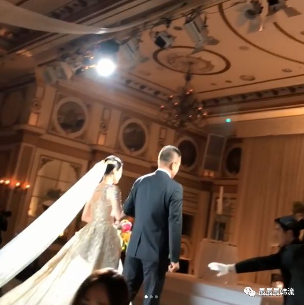 和父亲牵手走向新郎,据悉新郎是圈外人,有关信息也很少