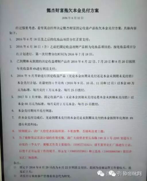 此外方案还特别提醒:请广大投资者保持理智,不要报警,否则利息要上缴。
