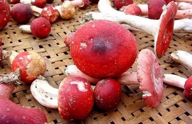 红菇菌盖呈扁半球形,中部下凹,深菜红色、紫红色,菌肉白色,汤色粉红。生长于原始森林中,无污染,夏秋采,晒干。性甘、温,益血通经,补血活血。治贫血、产后恶露不尽、白带过多、月经不调、关节痛,手足麻木、四肢抽搐。红菇是一种名贵的食用菌,纯天然野生,含有丰富的维生素B、D、E等,能补血,特别适合产妇及贫血者食用,其味道鲜美,清香爽口。