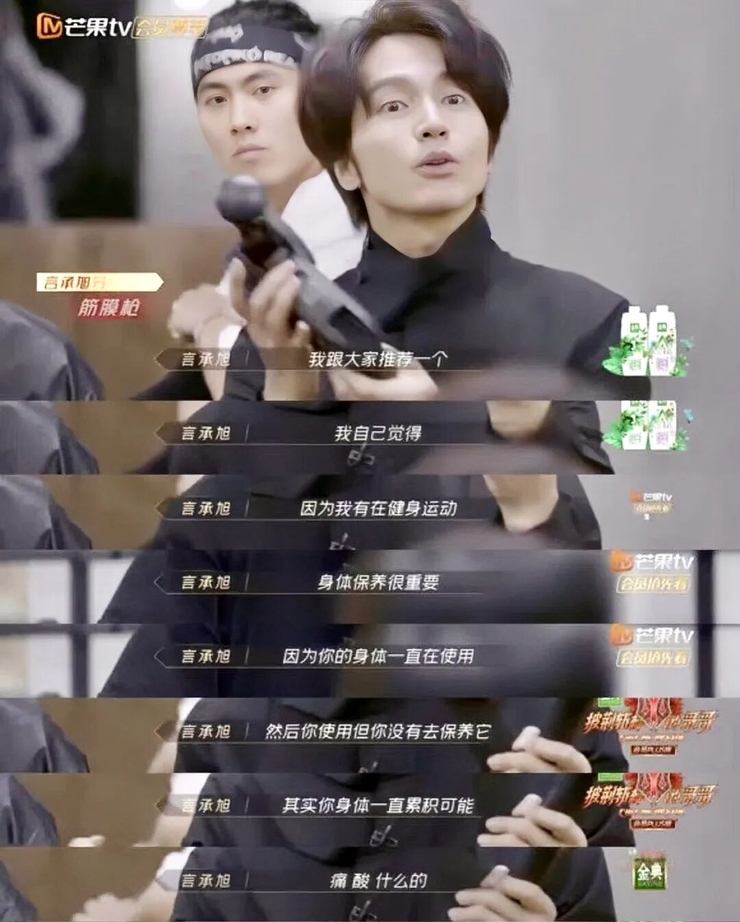在节目中,言承旭也将自己的宝藏好物“筋膜枪”拿出来和大家分享。