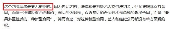 此前,林更新通过诉讼成功解约,张杰也通过付违约金解约了,蒋劲夫案是史无前例的艺人解约被驳回案,金晨案也是步了蒋劲夫案的后尘