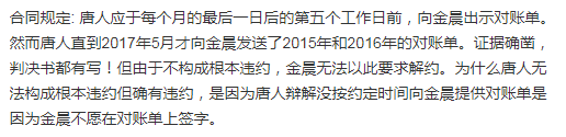 唐人也确有过失,比如发给金晨的对账单拖了两年