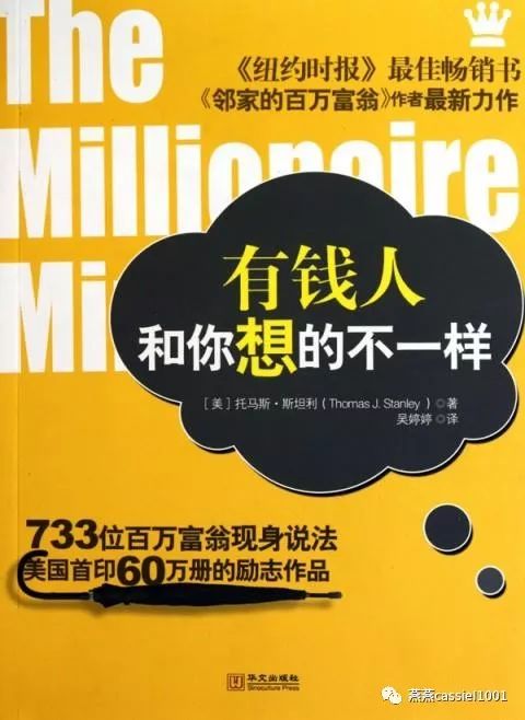 这本书是我第一本启蒙书籍,后来发现我的好友说好像不是这本。虽然版本不一样从中也学到很多,比如世界上的百万富翁能成功的原因,文中的7大要素的定位。给我的最大的启发是学习成绩不能决定未来;降低资金分险的方法;有效的找到自己的职业规划,我们优势劣势是什么?兴趣是最大的老师。以及婚姻带来的经济效益,如何达到圆满人生的方法都有记载,满满的正能量,带给读者很多独立思考的觉悟。——谢谢您