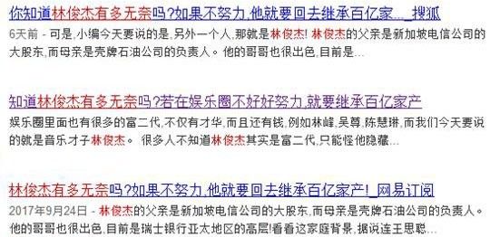 林俊杰的父亲是新加坡电信公司的大股东,而母亲是壳牌石油公司的负责人,他的哥哥林俊峰是瑞士银行亚太地区的副总裁!
