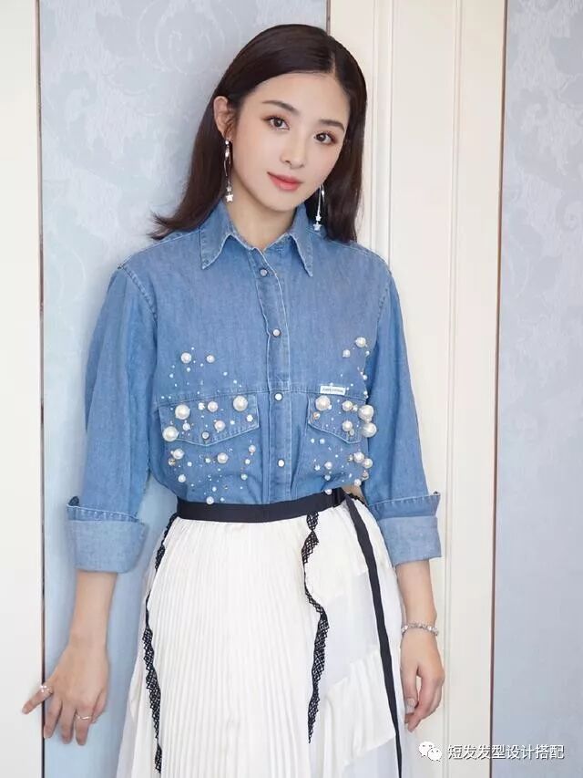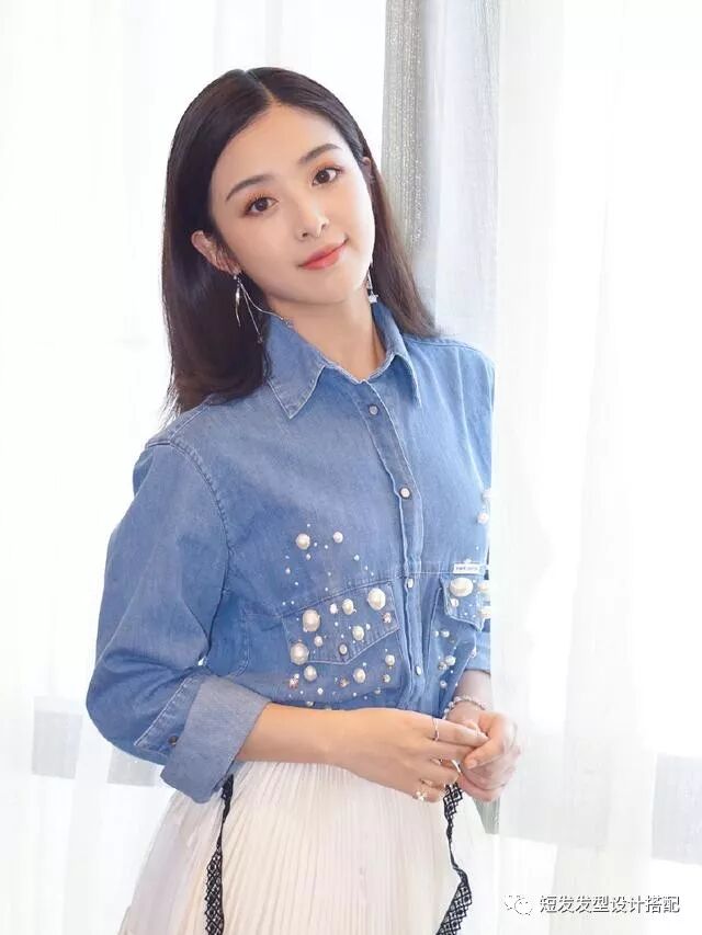 短发造型的张含韵知性温婉,长发的张含韵甜美可爱,牛仔上衣搭配白色半身裙,经典的蓝白两色加上一头长发,给人初恋般的甜蜜感,都说中分是考验一个人颜值的发型,hold住中分的都是高颜值美女,张含韵中分的长发清新大方,配上简介的白色半身裙清爽甜美。