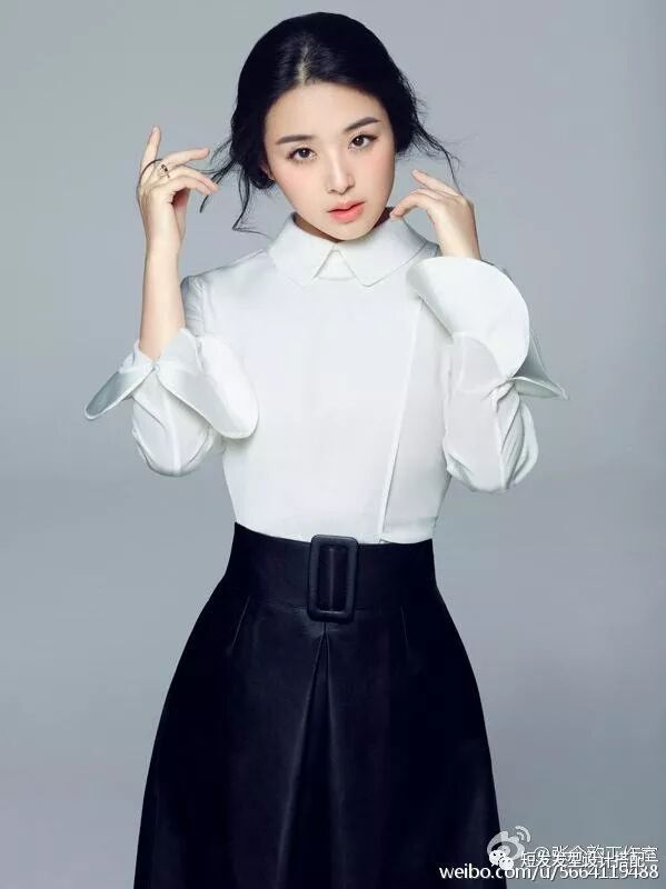 笑得那么甜,不知道是不是吃到什么好吃的了?白色T恤搭配黑色裙子,青春洋溢,刚好在膝盖上方一点的长度显得腿特别长,白T恤上的线条给人衬衫的错觉,也是非常的独特了,主要是将长卷发往后扎起一缕,减龄又清爽,轻熟女风格立马就活力满满,变身一个18岁少女。