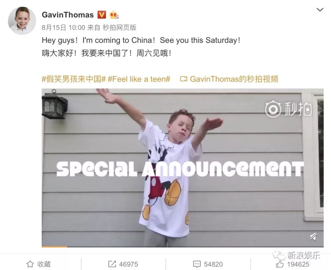 前段时间假笑男孩开了微博,有网友说这孩子估计是要进军中国了。