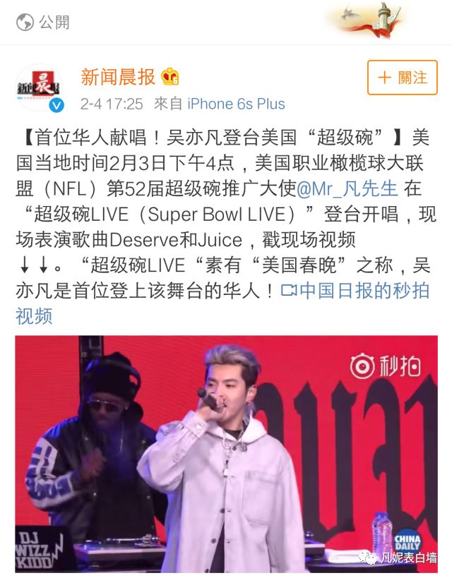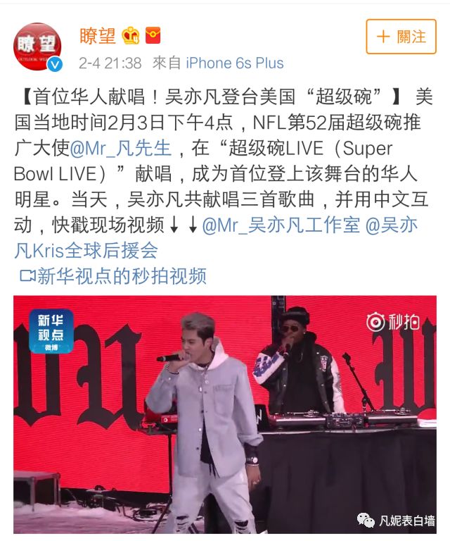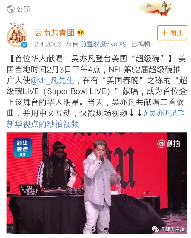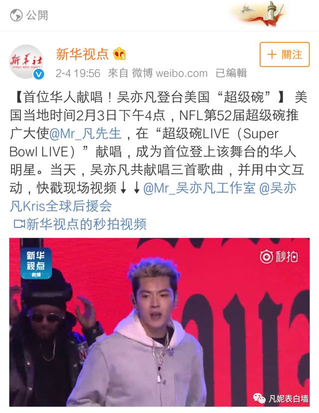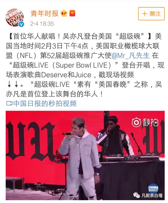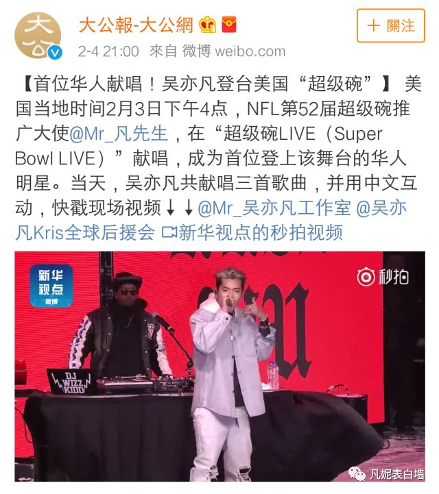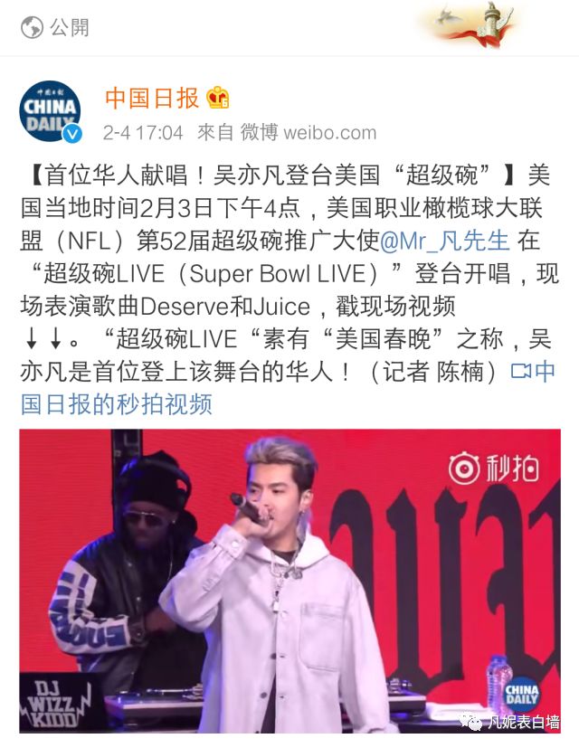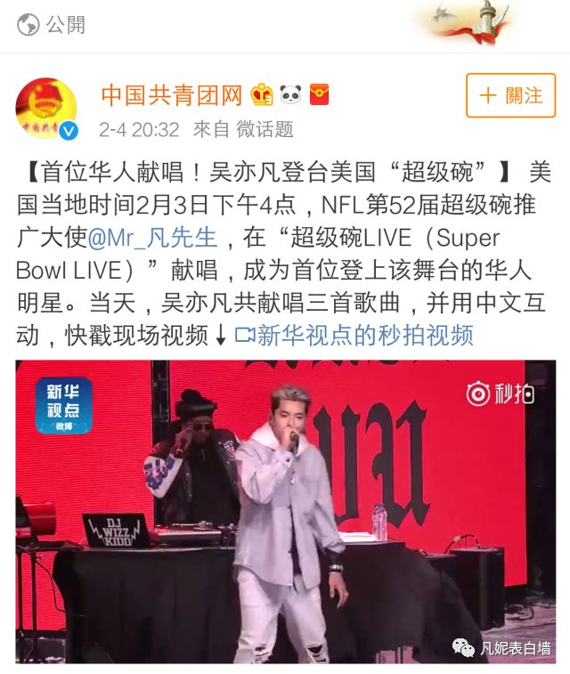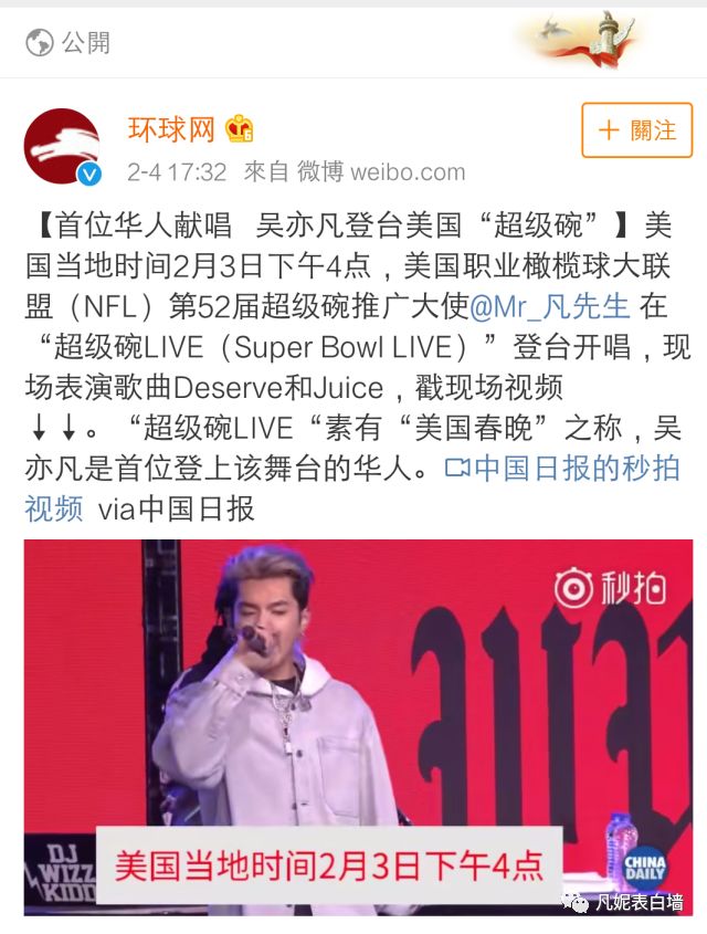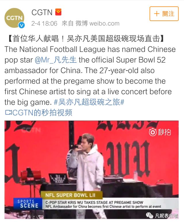 4 从吴亦凡受邀参加超级碗消息发出,到演出结束,国内多家主流权威媒体对此次活动进行报道。