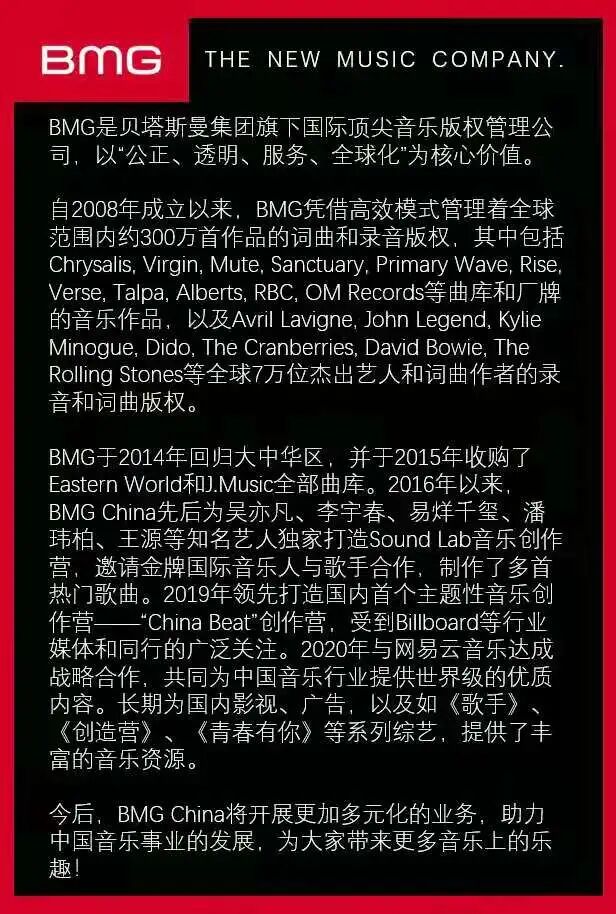 Adams的长期经理Bruce Allen说:“我期待Bryan在职业生涯的下一个篇章中与 BMG 团队合作。”