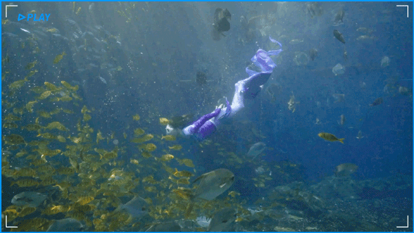 首次挑战水下表演的张柏芝换上美人鱼服装,潜游海底与鱼群共舞,画面绮丽、梦幻又浪漫。这才是真·迪士尼在逃人鱼公主吧?