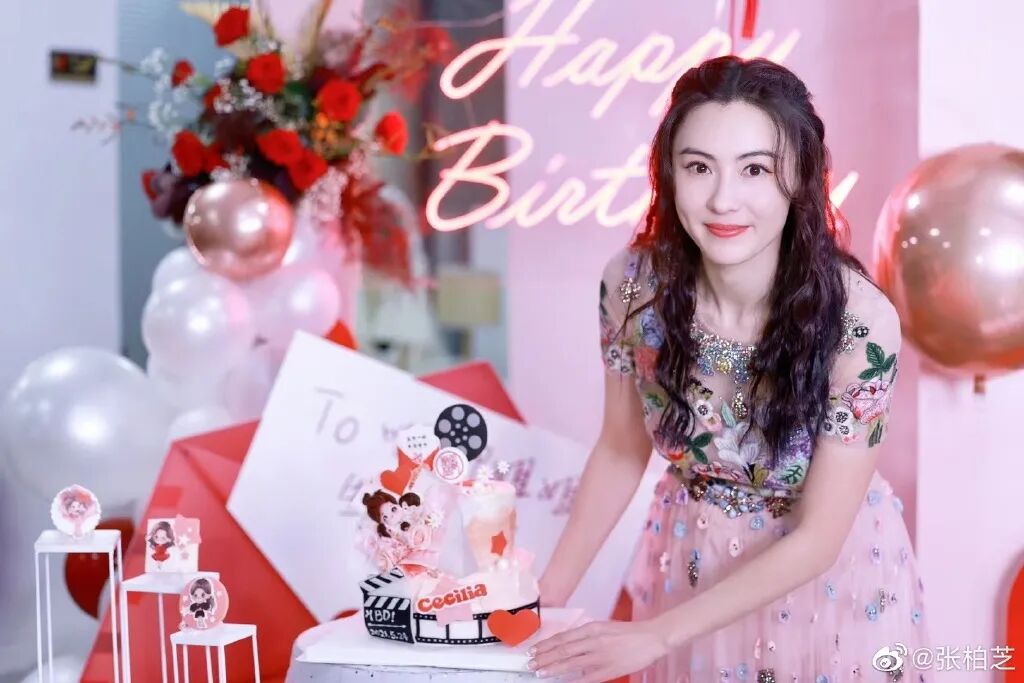 而在工作室最近po出的生日聚会照中,身穿粉色水晶刺绣长裙的张柏芝肌肤润白细腻,光泽感就像自带高光滤镜。