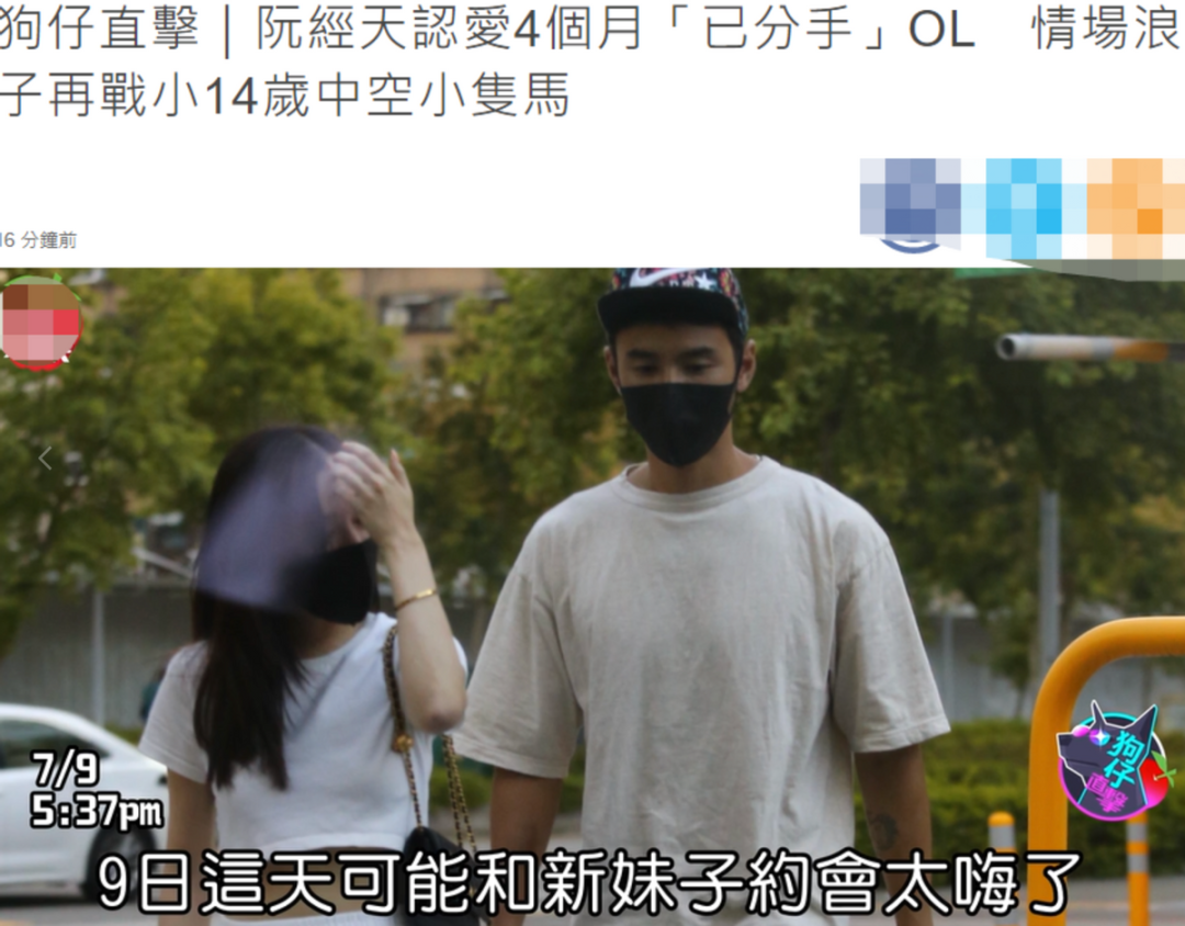 两个人举止亲密,阮经天的手搂住女方露出来的腰部,看起来关系匪浅,疑似新恋情,据说该女子比阮经天小14岁。