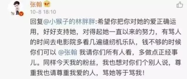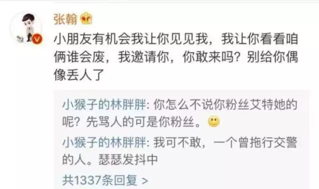 整个事件的确是粉丝有错在先,言辞过于激烈,但张翰作为公众人物,这样回复实属不妥。后面一句“钱不够的时候你们可以艾特张翰我请你们所有人看”更是直接暴露了他的低情商。