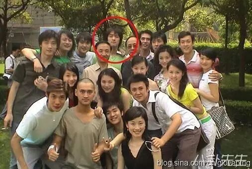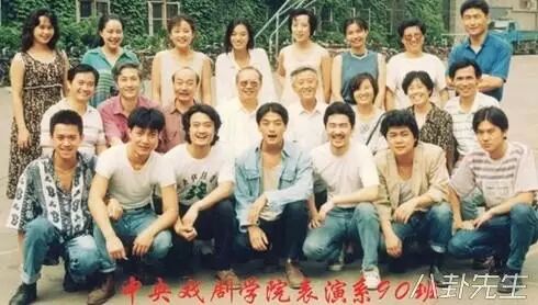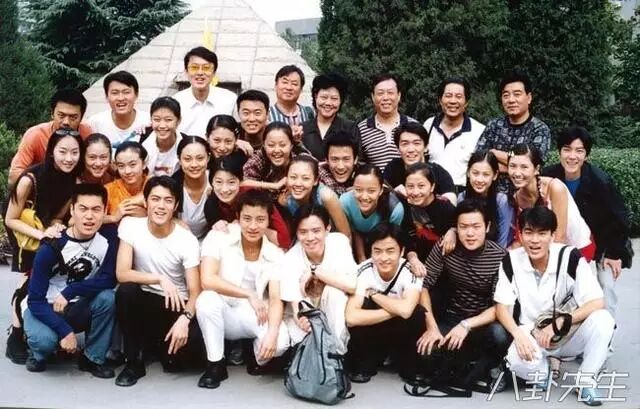 第一排右2是赵薇,赵薇的头上是陈坤和黄晓明,是名副其实的”明星班“。都是北影96级的同班学生。
