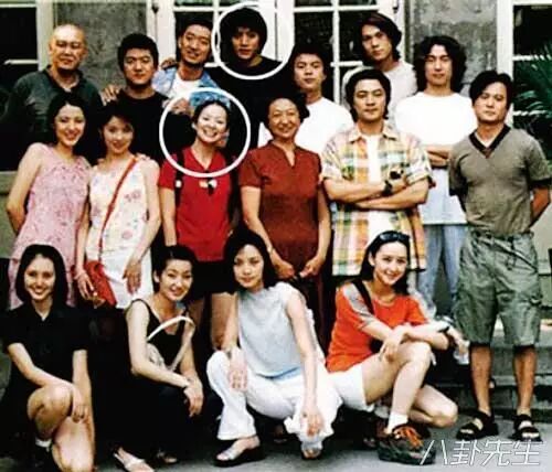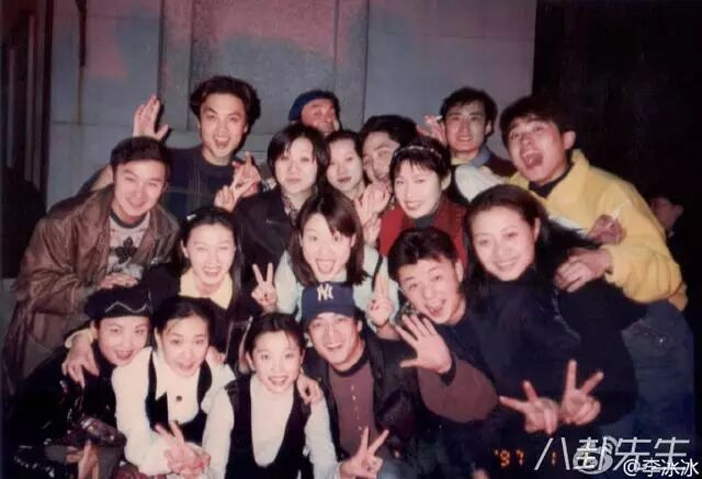 看图,中间为李冰冰和廖凡,右上角是任泉。其实还有个王亚楠。都是上戏93级的同学。