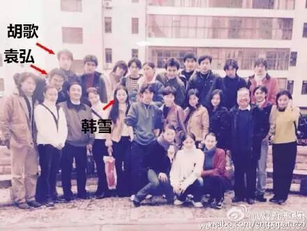 仔细看图,后面胡哥努力探出头来,前面的光头就是被喊滚出娱乐圈的袁弘,看起来像个和尚。当然,同班的还有韩雪。